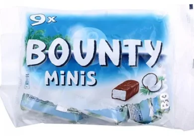 Bounty chocolate is a popular confectionery product known for its unique combination of smooth milk chocolate and a soft, moist coconut filling. Each Bounty bar consists of two rectangular pieces, with the outer layer made of rich milk chocolate that encases a sweet and indulgent coconut center.