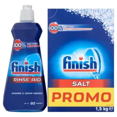 Hard water causes scale deposits in hidden areas, which reduces the washing performance of the dishwasher. Finish regenerating salt provides 100% better dishwasher protection* by softening the water, preventing scale deposits from forming in the dishwasher. It also removes stains and water spots from dishes and glasses. Important: Finish Regenerating Salt is specially formulated for dishwashers with a 99% pure formula. Other water softeners may contain impurities that can damage dishwashers.