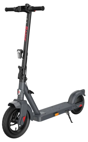 With over 20 years of experience in crafting the finest scooters, Razor introduces an innovative offset wheel design with the C25. This scooter features two wheels with pneumatic tyres – 12-inch (305 mm) front and an 8.5-inch (216 mm) rear. The large front wheel provides stability over harsh or uneven surfaces, while the smaller rear drive wheel allows for a lower deck height, which increases your level of comfort.